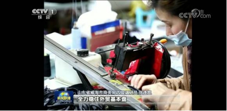 (同期聲)威海市商務局 張連凱:“小微企業市場空間比較狹窄,我們通過加大推廣和宣傳力度,幫助這些企業渡過這段特殊的困難時期,全力穩住外貿基本盤。”